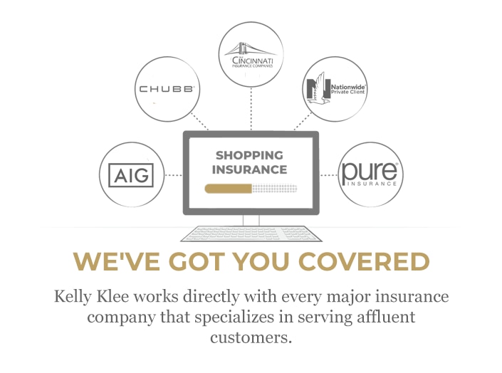 At Kelly Klee, our expert coverage advisors use the latest technology to craft custom insurance plans that cover all our clients' valuable possessions, including cars, home, jewelry, art, boats, and motorcycles. Our streamlined process is designed to save clients' time while optimizing coverage quality. Our technology also allows our dedicated relationship advisors to be extremely responsive, ensuring that client needs are addressed expeditiously and without hassle.. In partnership with our select carriers, such as Chubb, AIG, and PURE, we are helping prosperous Americans cover over $1 Billion in personal property and wealth in all 50 states.