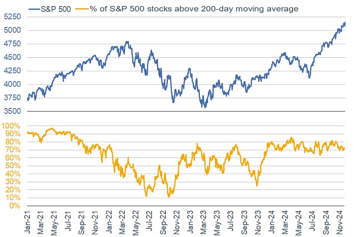 The about-face by a number of sectors is in keeping with our view that sector rotations are likely to continue to be fierce. We will write more about that theme in our upcoming 2025 outlook report. In general, however, we expect that overall market breadth will remain relatively healthy, but in the context of some expected bursts of volatility.
