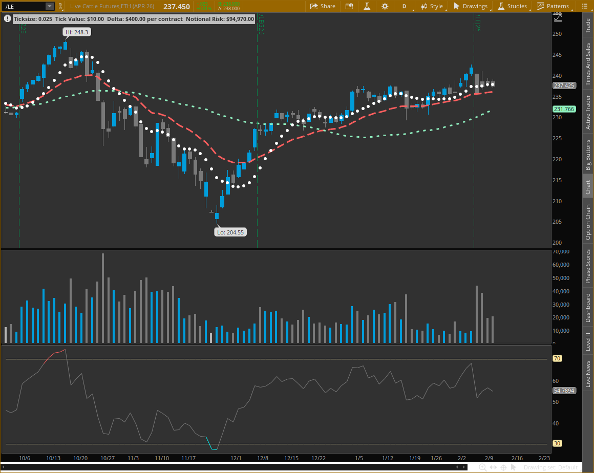 The 14-Day Relative Strength Index at 66.31% indicates the contract is moving toward overbought levels.